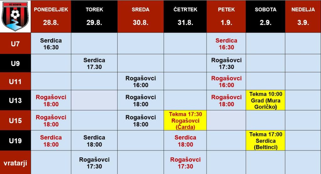 V tem tednu selekcija U19 (mladinci) v soboto, 2.9. igra prvo prvenstveno tekmo, selekciji U15 in U13 pa zadnji prijateljski tekmi pred prvenstvom.