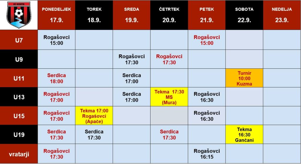 Urnik aktivnosti za prihajajoči teden.